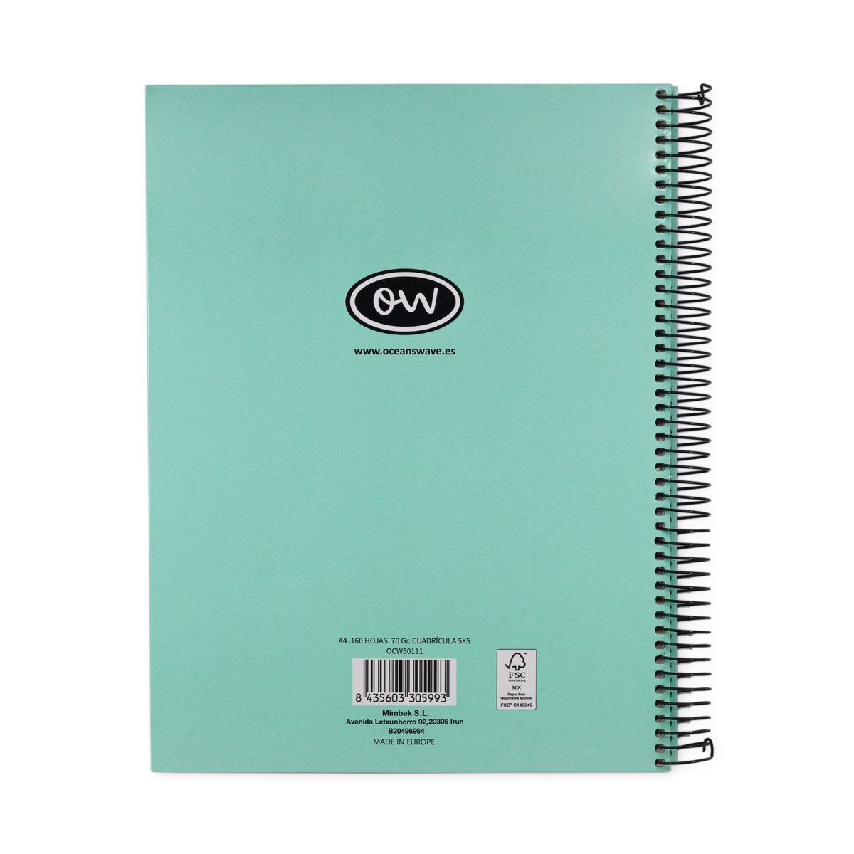 Caderno com capa extra dura microperfurada para poder arquivar as folhas em pastas. Cores pastel variadas. Papel de 70 gramas com grade 5x5. Tamanho Din A-4 e 160 folhas