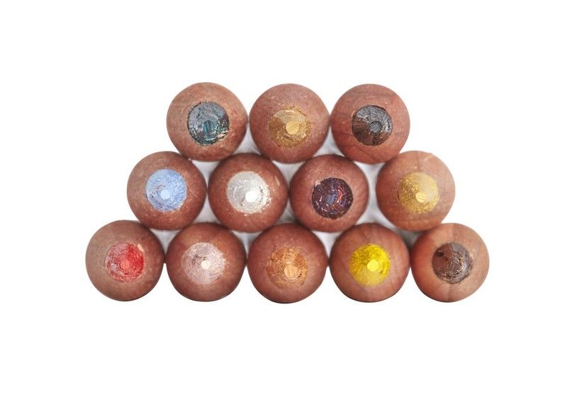 Caixa metálica com 12 lápis de cor Derwent Lightfast. Resistente à luz e mudanças de cor por anos. Inalterável até 100 anos