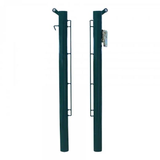 Conjunto de dois postes ultra reforçados de 5 mm de espessura, fabricados em aço de seção redonda de 80 mm. Projetado para ser fixado ao solo por meio de latas metálicas (não incluídas, veja referência 3-0012313), embutidas em uma base de concreto. Inclui uma catraca para apertar o cabo de rede que você deseja instalar. Elas são fabricadas para que a rede fique na altura regulamentada de 92 cm. Ideal para evitar danos por excesso de voltagem.