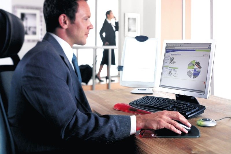 A almofada de gel se adapta à curva natural do pulso e da mão para uma digitação confortável.