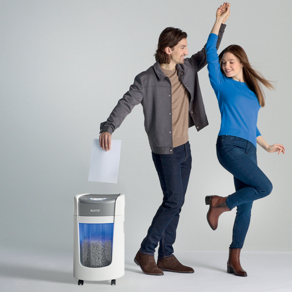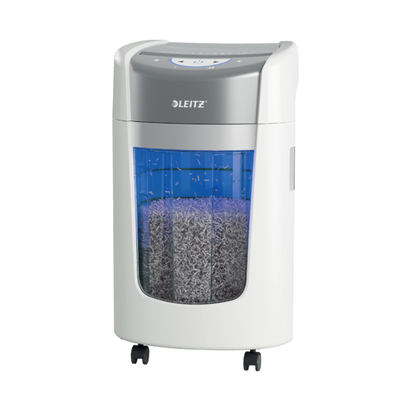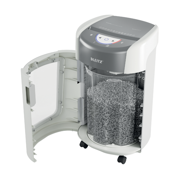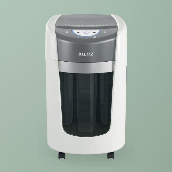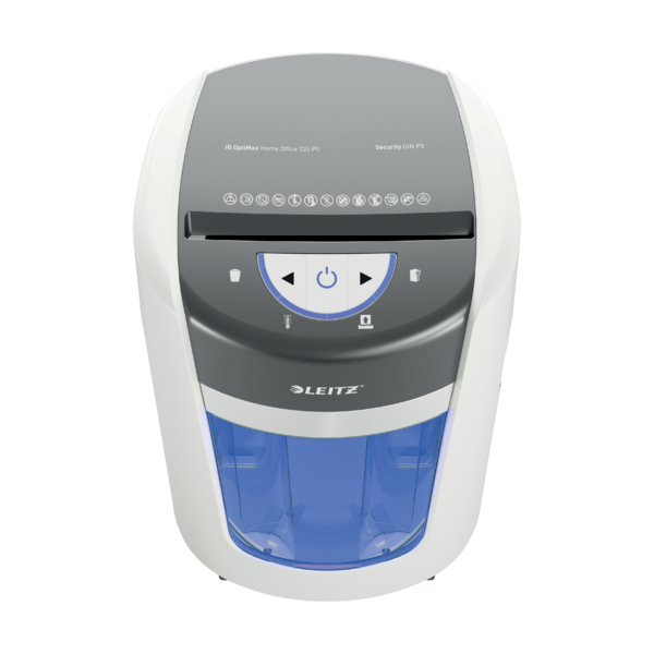 La destructora Leitz IQ OptiMax para la oficina en casa ofrece una solución innovadora y elegante para la destrucción de documentos, proporcionando una seguridad y tranquilidad excepcionales. Esta destructora de papel DIN P5 de alta seguridad destruye sin esfuerzo hasta 6 hojas A4 a la vez en trozos microcortados, lo que la convierte en una destructora pequeña ideal para uso personal y en la oficina en casa. Con su exclusiva tecnología de giro de papelera (BRT), la destructora Leitz maximiza la capacidad de la papelera en un 45%*. La papelera giratoria garantiza una distribución plana y uniforme del papel, evitando los picos de papel y permitiendo destruir 70 hojas A4 adicionales antes de tener que vaciarla. Con BRT, no es necesario sacar o agitar la papelera: el indicador de "papelera llena" se activa solo al 100% de su capacidad. La papelera de 15 litros tiene capacidad para 225 hojas A4 y se ilumina con una elegante luz azul durante su uso para mejorar la experiencia de destrucción. Una pantalla LED intuitiva proporciona indicaciones claras de advertencia de papelera llena, puerta abierta, sobrecalentamiento y sobrecarga, garantizando un funcionamiento suave y sin problemas. Diseñada para espacios de trabajo en casa, la destructora de oficina Leitz IQ OptiMax 225 ofrece un rendimiento ultrasilencioso para minimizar las molestias, lo que la hace perfecta para espacios compartidos. Su diseño elegante y compacto se integra sin esfuerzo en cualquier habitación, encajando fácilmente en espacios reducidos sin sacrificar el rendimiento. Con 20 minutos de funcionamiento continuo, esta destructora ofrece una destrucción fiable y segura para la eliminación diaria de documentos. Color blanco.*Leitz IQ OptiMax 225 probada con y sin tecnología de giro de papelera.