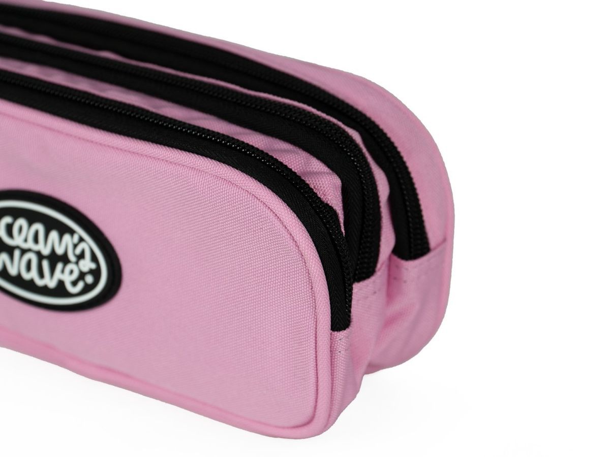 Estojo de alta qualidade com três zíperes e puxadores ergonômicos de metal. Compartimentos grandes e forrados para organizar materiais escolares. Com alça para facilitar o transporte. Tamanho: 11x23x9 cm.