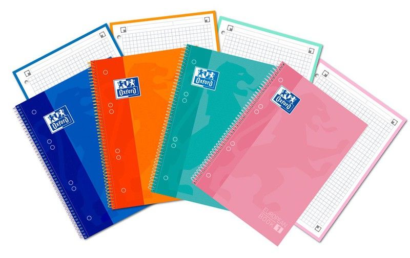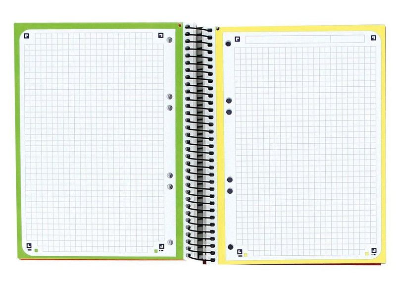 Caderno microperfurado sortido com capa dura extra. 90g de papel branco brilhante. e 120 folhas com grade 5x5. Caixa e espiral para combinar com a tampa.