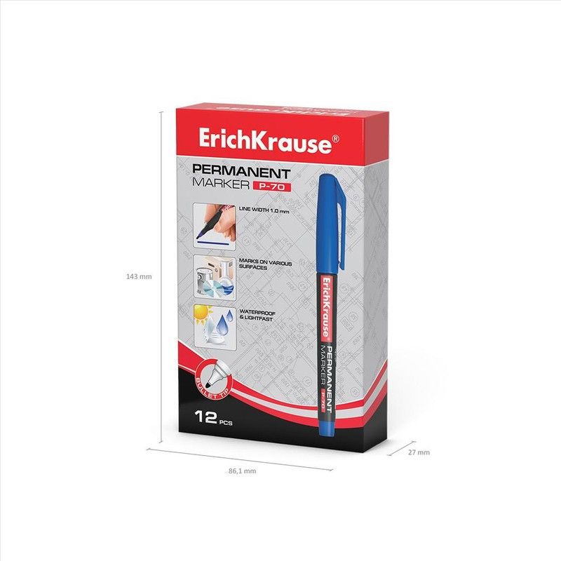 Marcador permanente universal. Adequado para gravação em qualquer superfície, incluindo discos CD/DVD e filmes OHP. A ponta em forma de bala tem diâmetro de 1,0 mm. Não tóxico. Eles não contêm xileno ou tolueno.