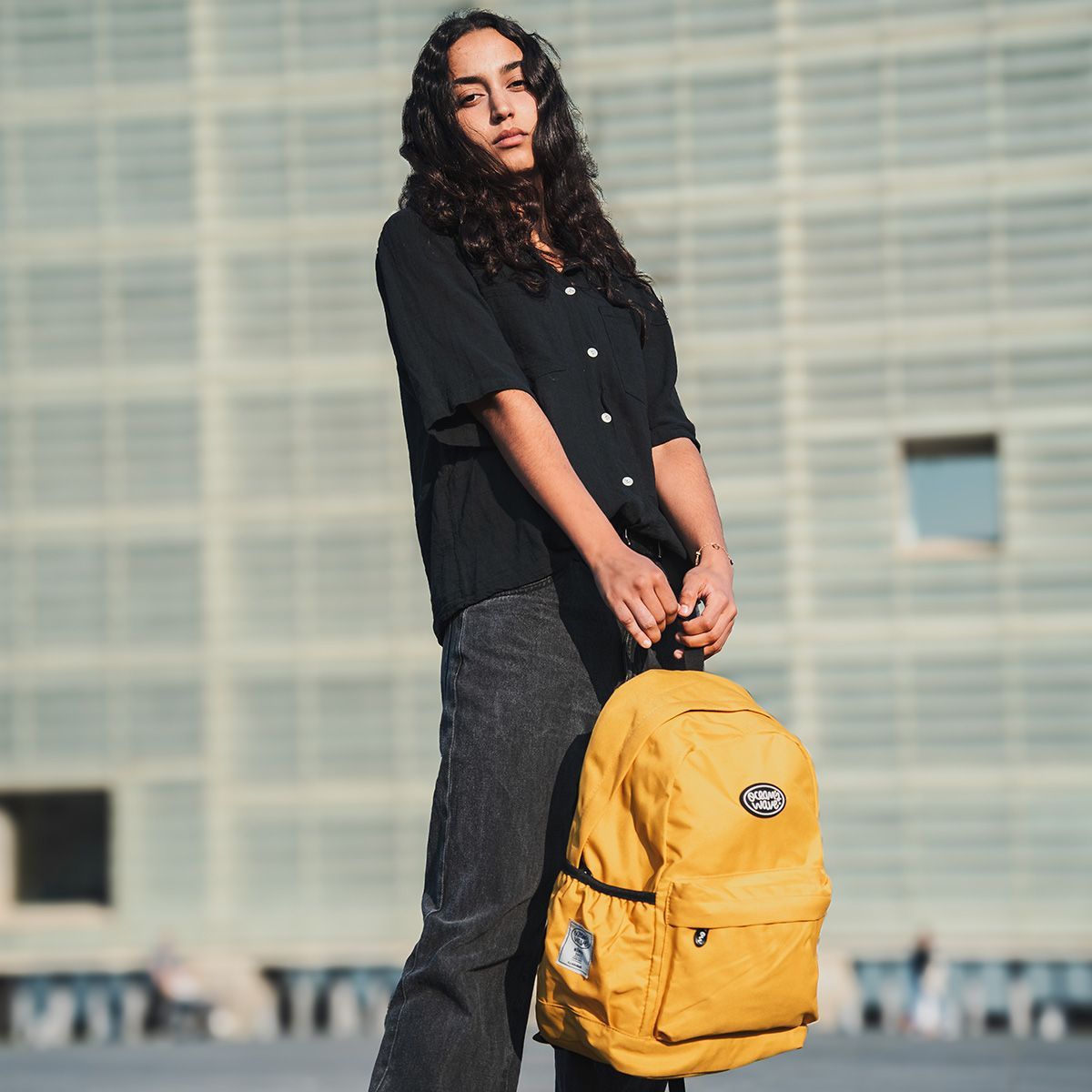 Mochila leve com tecido resistente à água. Compartimento interior para portátil, bolso frontal com fecho e bolsos laterais com elástico. Costas e alças acolchoadas. Capacidade 30 litros. Medidas 45 x 33 x 19 cm.