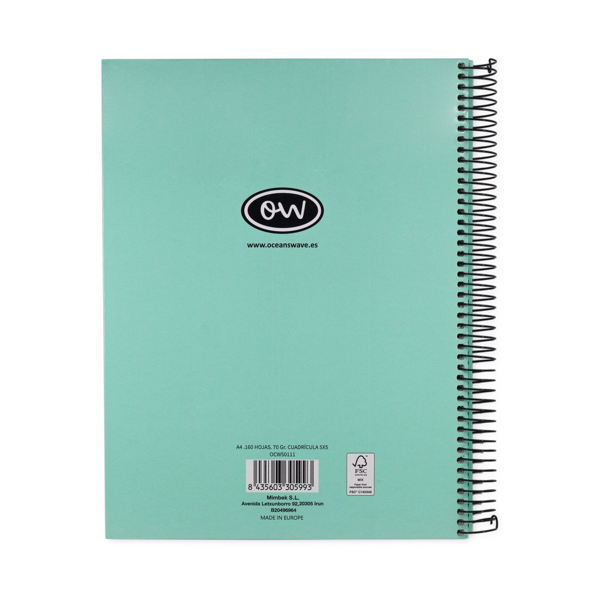 Cadernos Ocean's Wave em tamanho Din A-5. Caderno microperfurado com 160 folhas. 70 gramas de papel. e com uma grade 5x5. Capa de papelão extra duro. Servido em cores pastel sortidas