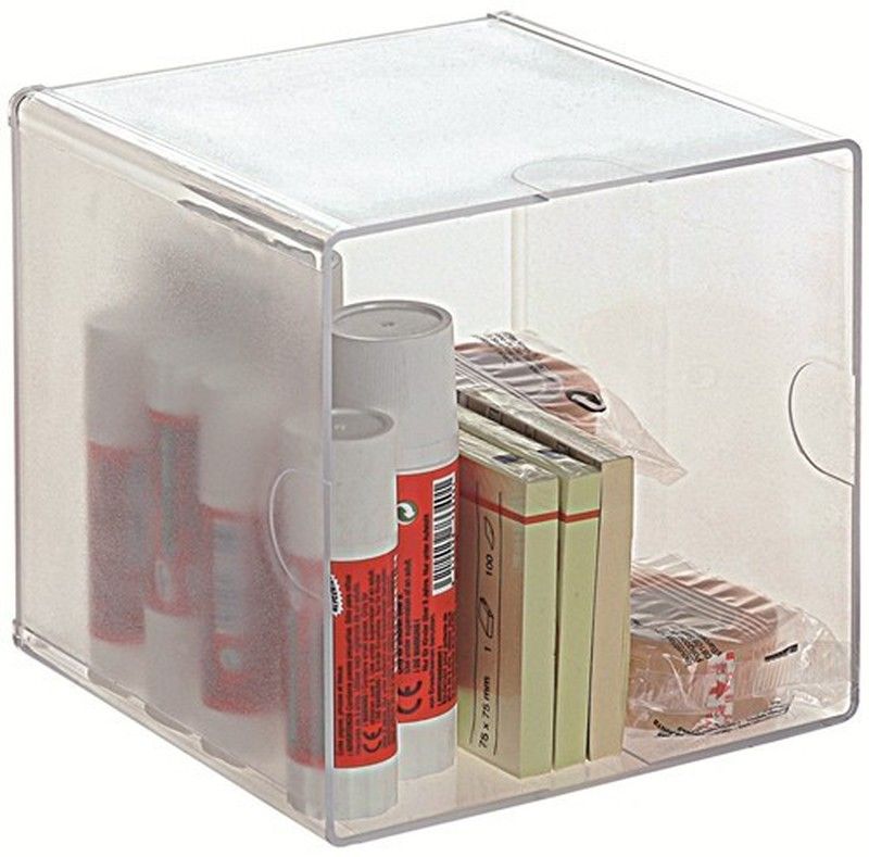 Organizadores modulares em plástico poliestireno injetado em cor transparente translúcida. Eles podem ser empilhados e unidos verticalmente e horizontalmente usando os 2 clipes que cada organizador inclui. Ideal para armários ou prateleiras para organizar pequenos materiais e aproveitar ao máximo o espaço. Disponível em 4 modelos diferentes. Medidas: 155 x 155 x 155 mm.. Modelos de gavetas: 190 x 155 x 155 mm..