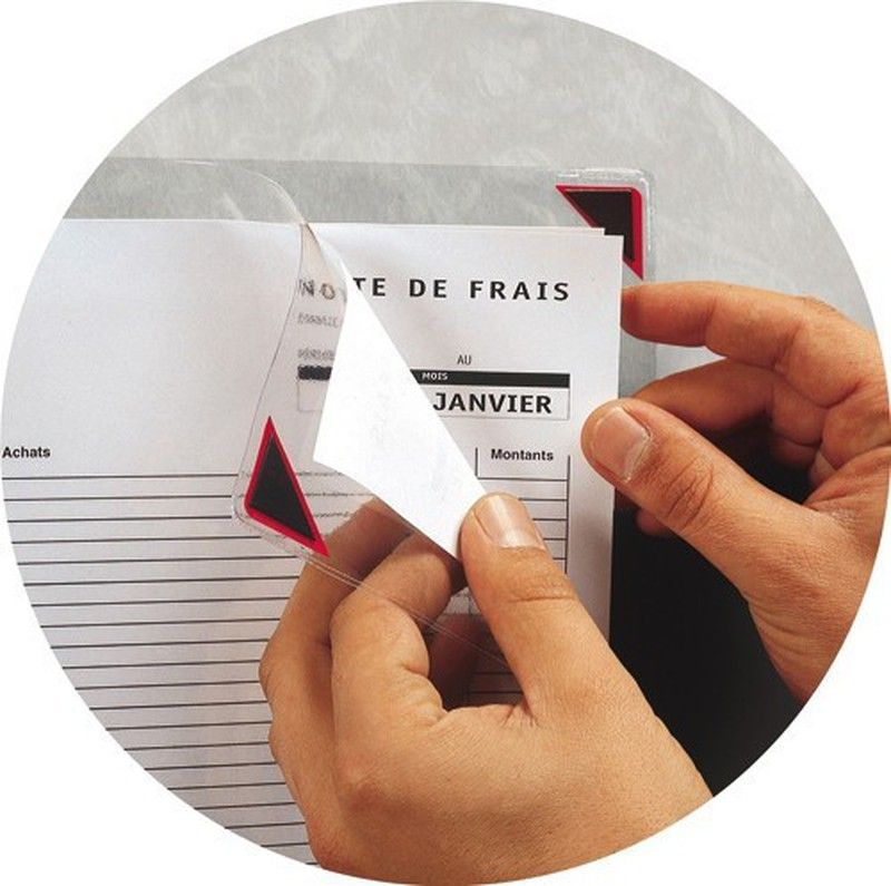 Capas adesivas com abertura em L e fecho magnético no canto superior direito. Isso permite uma fácil mudança de documentação. Tem capacidade para até 10 folhas e pode ser colocado tanto na vertical como na horizontal. São fabricados em PVC antirreflexo e os doros são totalmente adesivos e reposicionáveis. Para poder colocar e tirar em qualquer superfície lisa. tamanho din a-3.