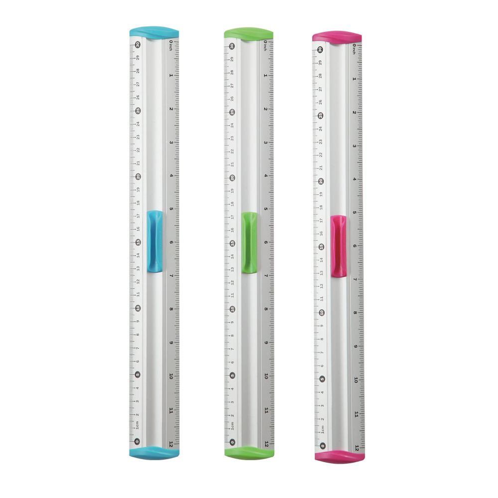 Regla de aluminio de 30 cm con soporte para escritura. Laterales reforzados. Blíster 1 unidad.