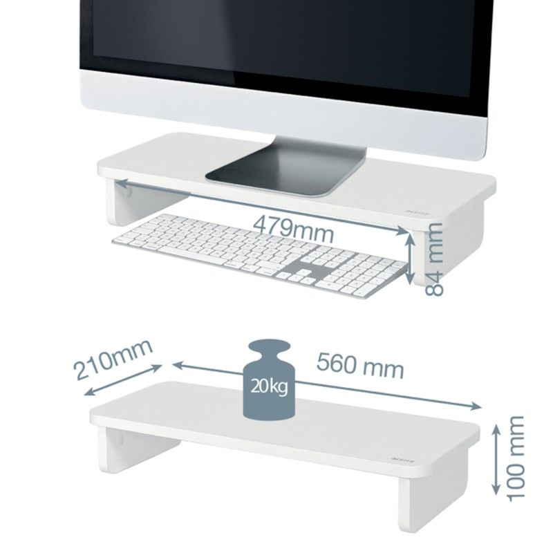 O suporte para monitor Leitz Ergo eleva a tela do monitor para aumentar o conforto de visualização e ajudar a melhorar a postura. Usar um monitor riser também manterá sua mesa organizada e livre de bagunça, fornecendo armazenamento para o teclado e outros itens essenciais do dia a dia. Com seu design minimalista e acabamento fosco, este elegante suporte para monitor melhorará a saúde e o bem-estar, criando sem esforço a configuração de trabalho ativo perfeita. Combine-o com outros produtos Leitz Ergo para obter um espaço de trabalho atraente e flexível que mantém você em movimento o dia todo. Suporte ergonômico para monitor para máximo conforto. Fornece armazenamento adicional na área de trabalho. Design moderno e minimalista para um espaço de trabalho organizado.