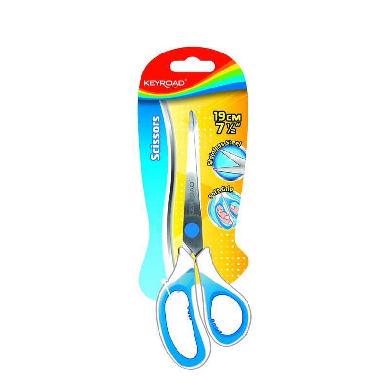 Tesouras de escritório de 19 e 21 cm. Alças de borracha e soft grip para maior conforto.